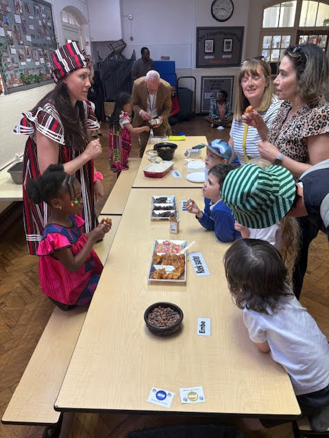 Today we celebrated Jamacia thanks to Kwesi Okutu who lead this engaging and exciting session with his son Adwin! In this session we learnt about the country Jamacia, what food grows there, what activities and sports they do and even some of their language! The families loved sampling the food supplied by Kwesi's family and Levi's kitchen who made some delicious Jerk Chicken and rice!
