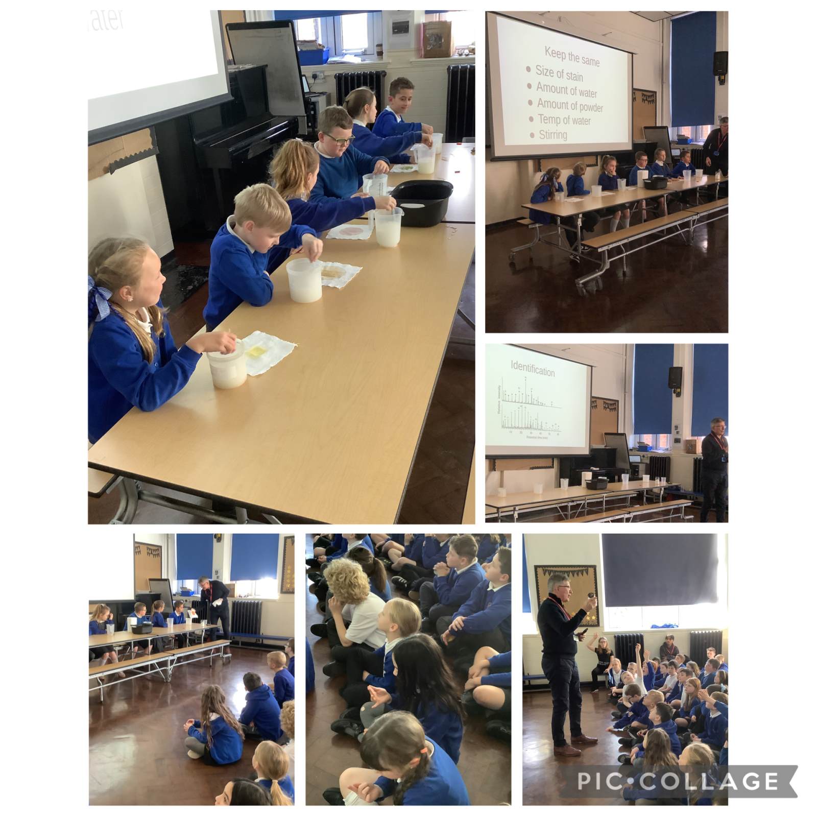 Earlier this week, the children in year 4 were delighted to welcome Mr Warren to discuss his career as part of British Science Week. Mr Warren talked to us about the importance of identification with chemicals and the various ways this can be done. He then showed us how this process impacts our lives with detergents and cleaning products