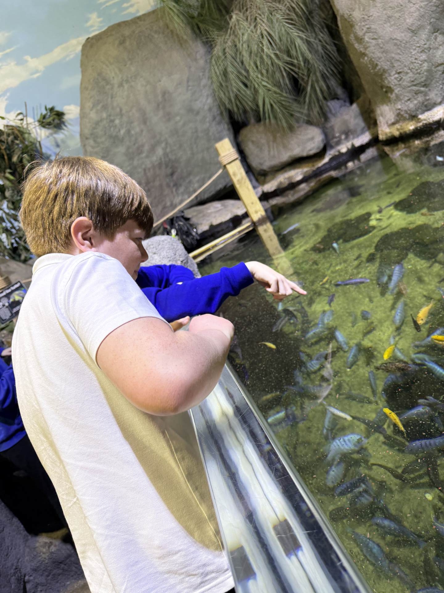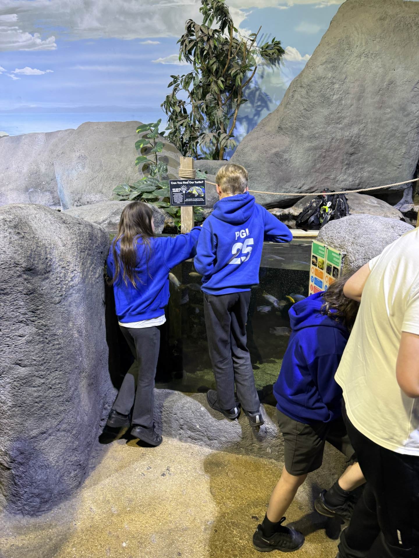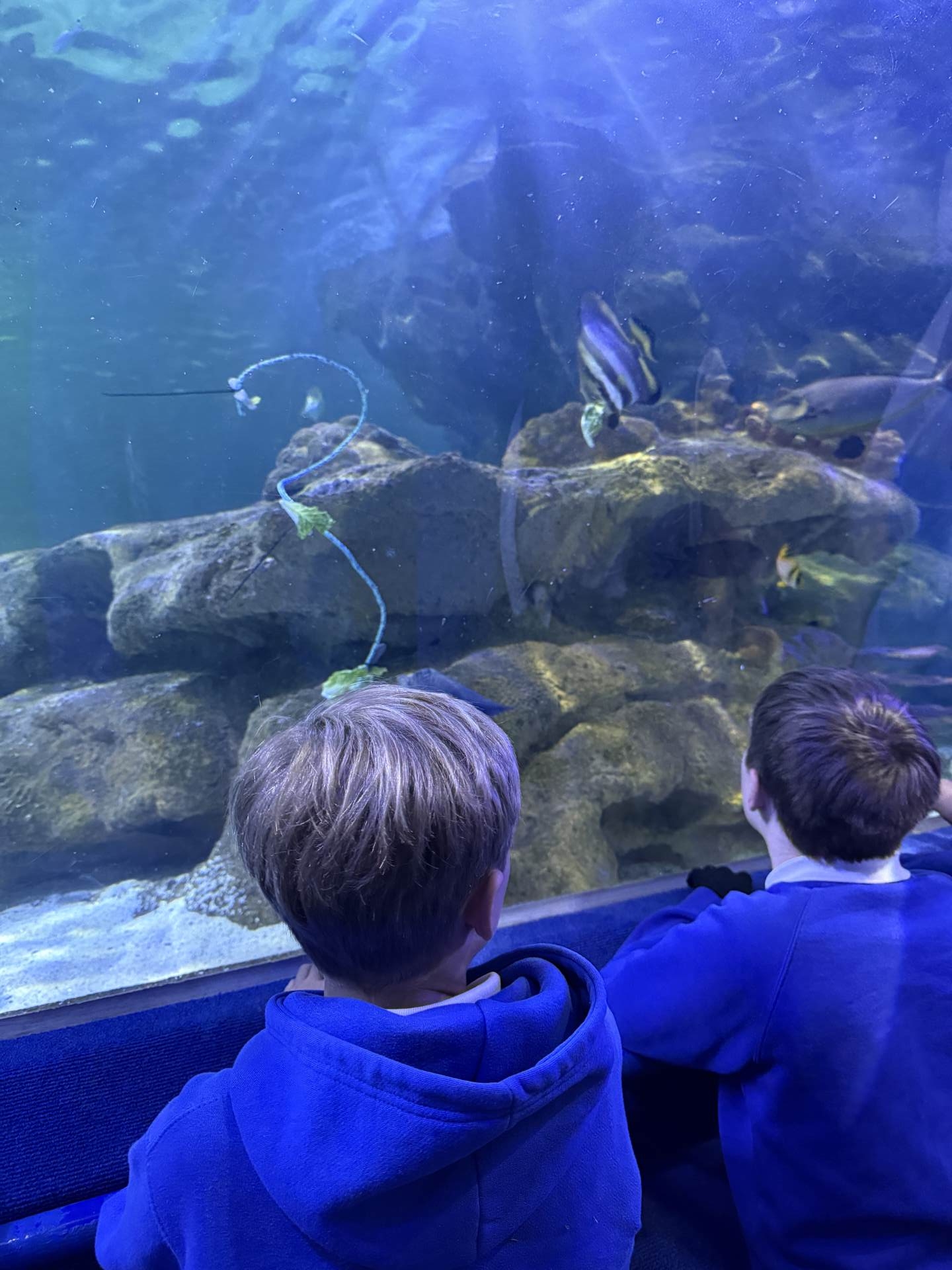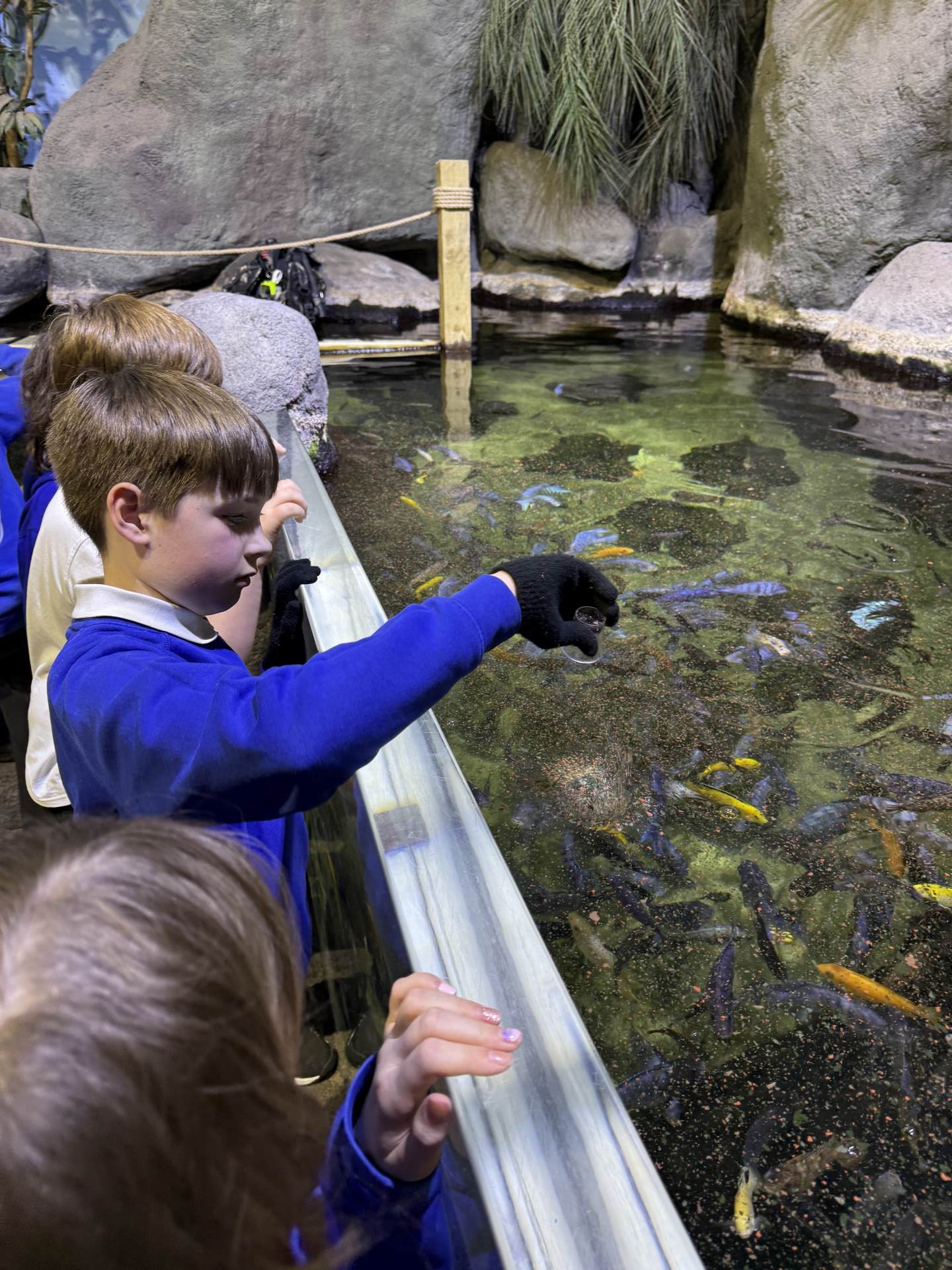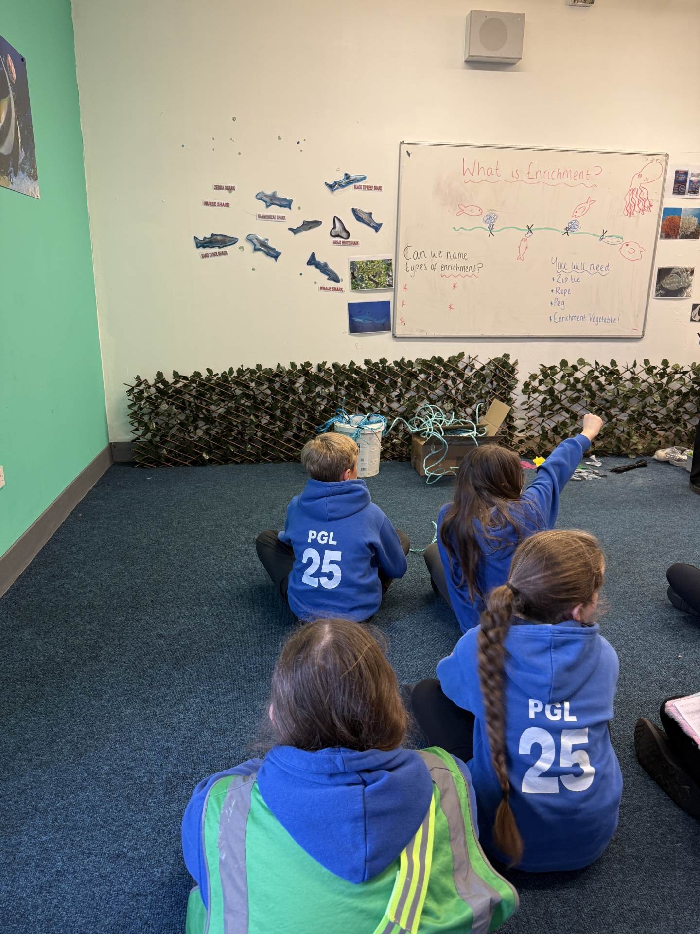 The highlight of the day was a journey through the famous underwater tunnel. As the sharks and rays glided overhead, the students got to see their hard work in action. The divers submerged into the tank, carrying the very enrichment ropes the Eco Team had made earlier that morning!