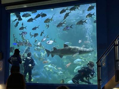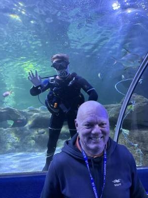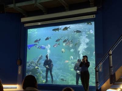 The excitement reached fever pitch as the group gathered at the main tank to watch the professional divers feed the sharks. Seeing these majestic predators up close (and watching the courage of the divers) was a moment nobody will forget! One of the divers, Charlie, is the son of our minibus driver - Pete!