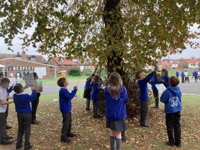 6A have been busy identifying leaves found outside Topsite in order to create a branching key. We scoured through the trim trail area and forest school to find as many different types as possible!
