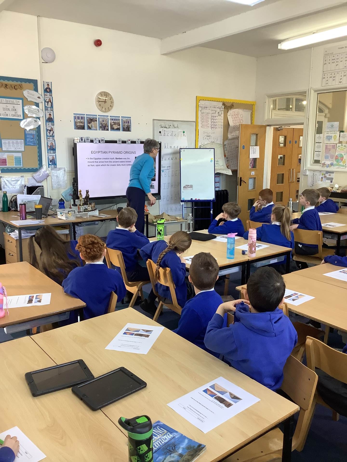 Year 3 had an exciting visit from Julie Marshall today, who spoke to us about Ancient Egypt, including the pyramids and Egyptian gods. She brought in a range of fascinating artefacts, such as models of the gods, which we really enjoyed exploring. Julie also shared photos from her trips to Egypt, where she had the incredible experience of going inside the pyramids.