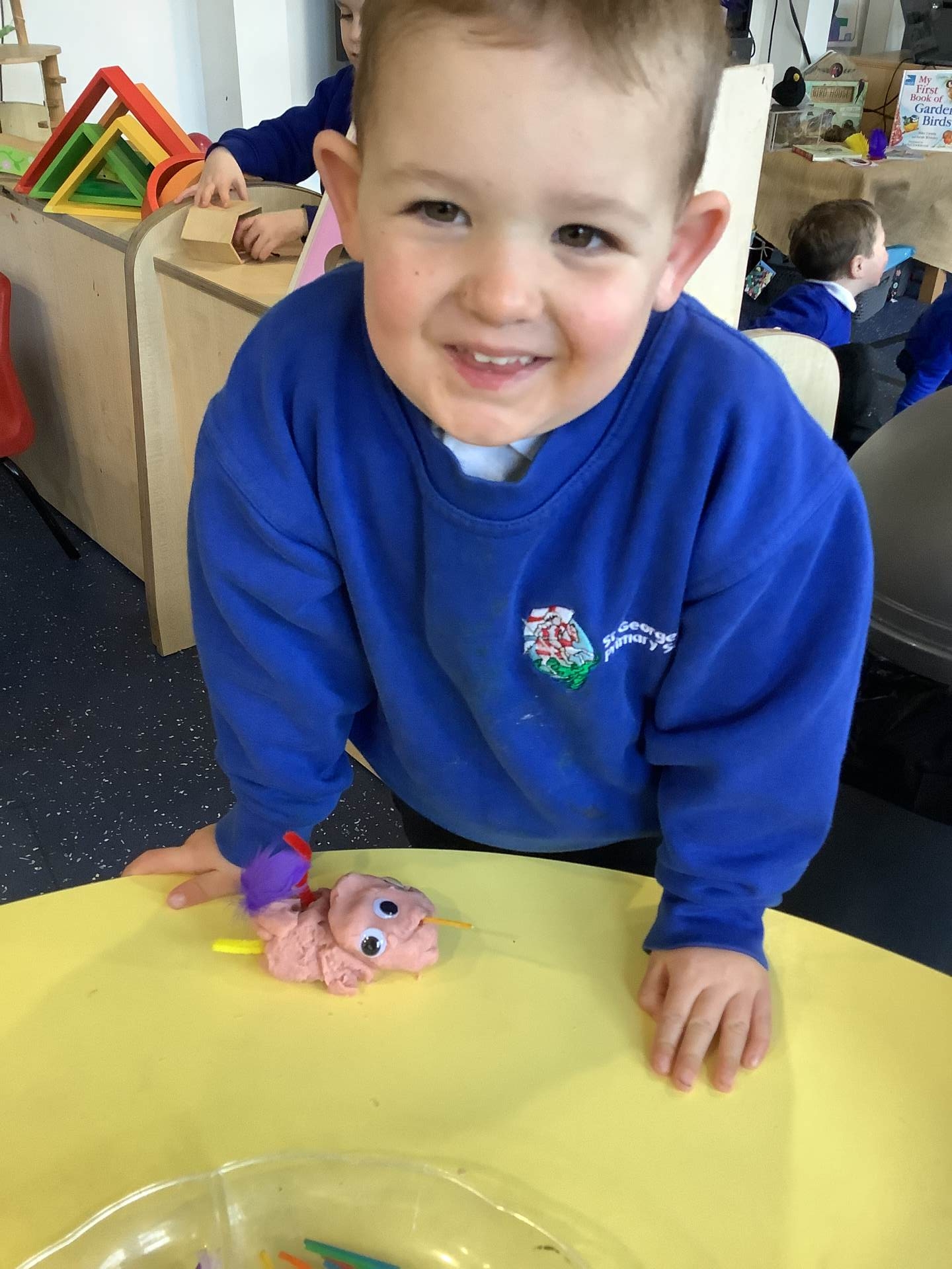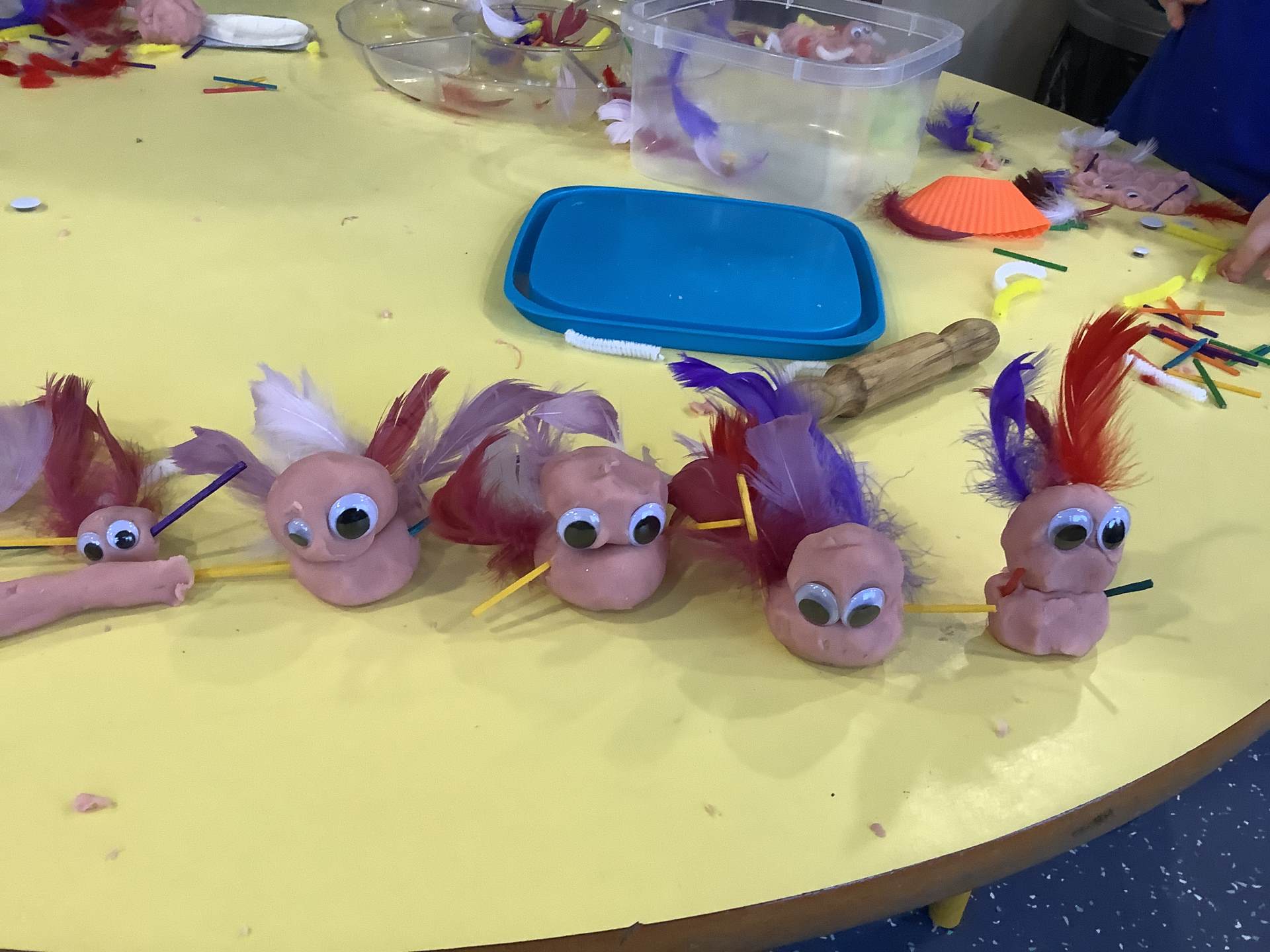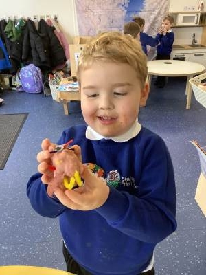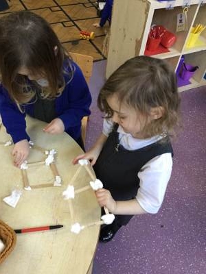 This week we have been learning all about birds, F1A have been enjoying using lolly sticks and marshmallows to make bird houses while F1C have been enjoying making birds using the playdough. Look at our amazing creations.