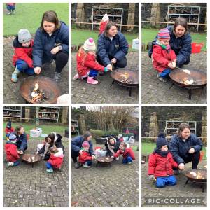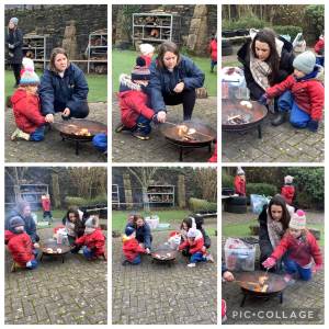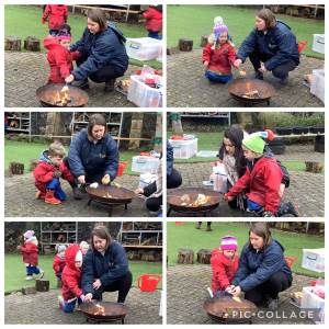 At forest school this week we had a fire, the children were very safe and remembered the forest school rule of 'walking around the fire circle' all the children toasted a bagel remembering the safety stance.