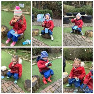 The children have been really enjoying their forest school sessions. They have been using their gross motor skills to climb a tree, balance along a rope bridge, and dig. They have been using their imagination to make delicious food in the mud kitchen, and have loved exploring the nature.