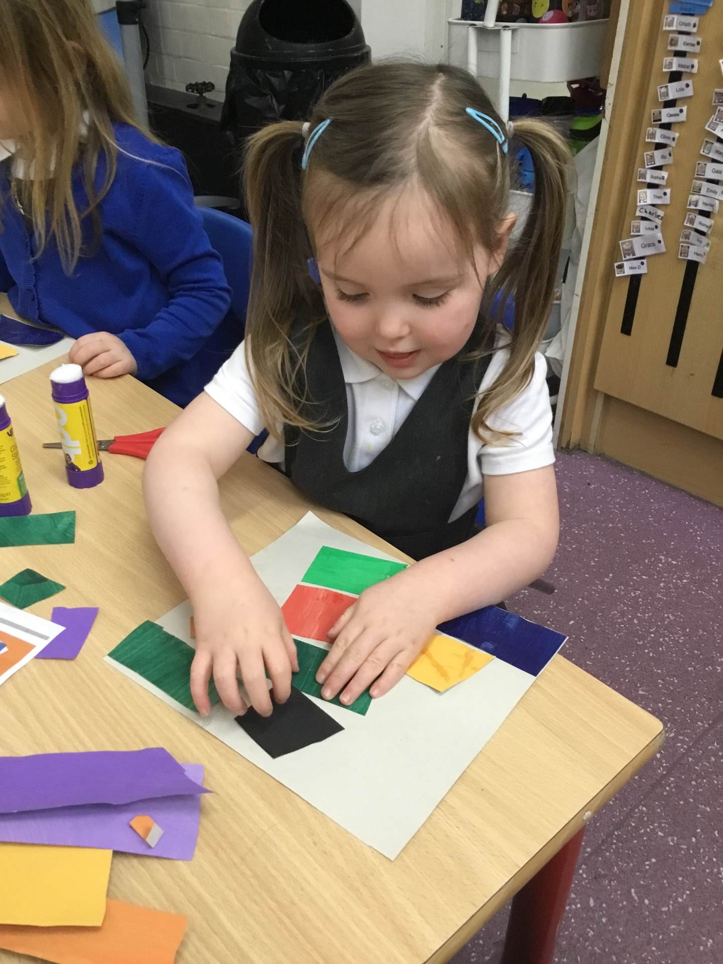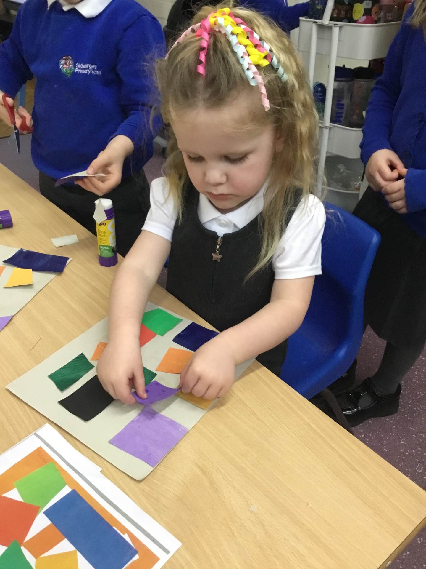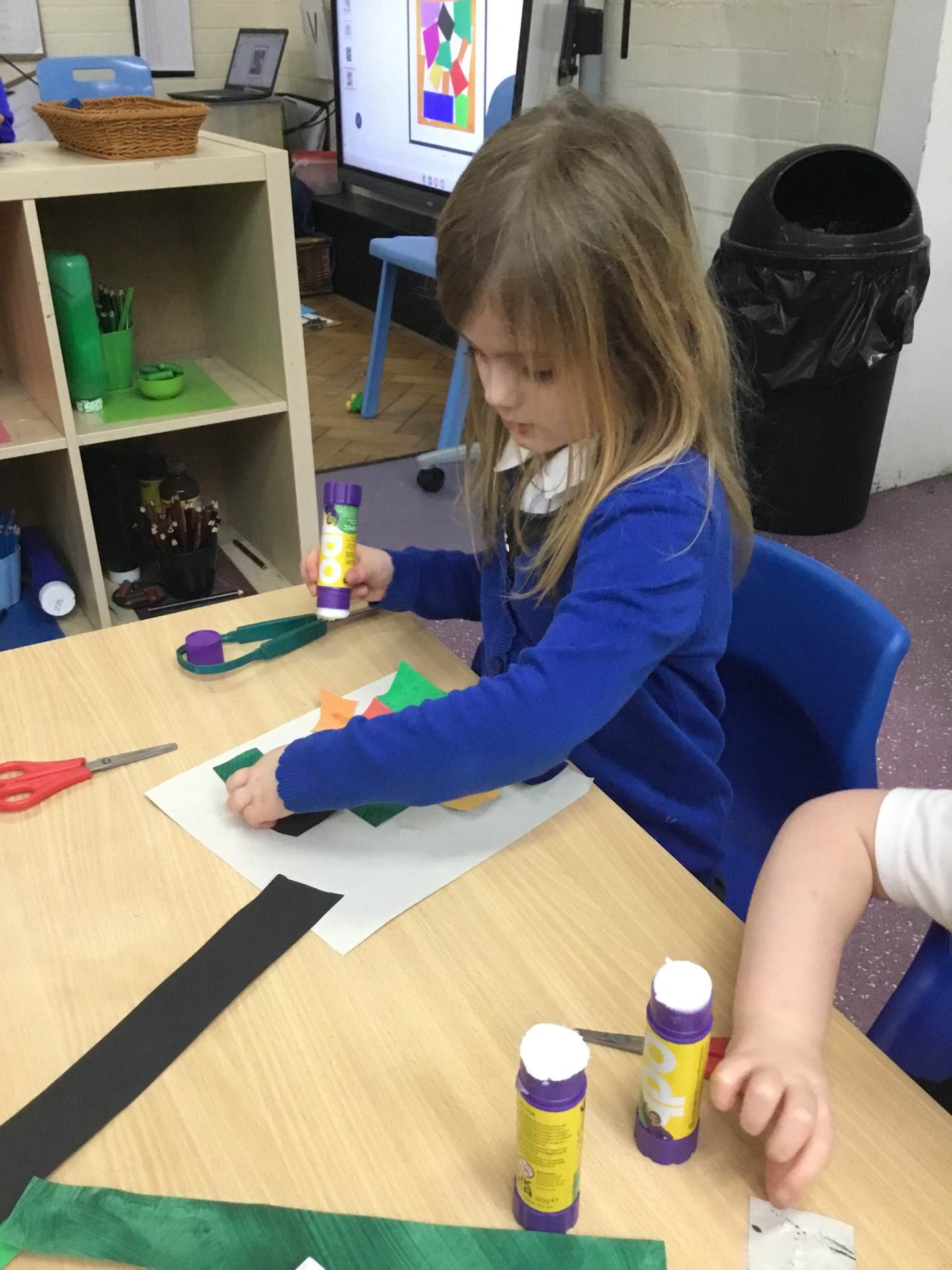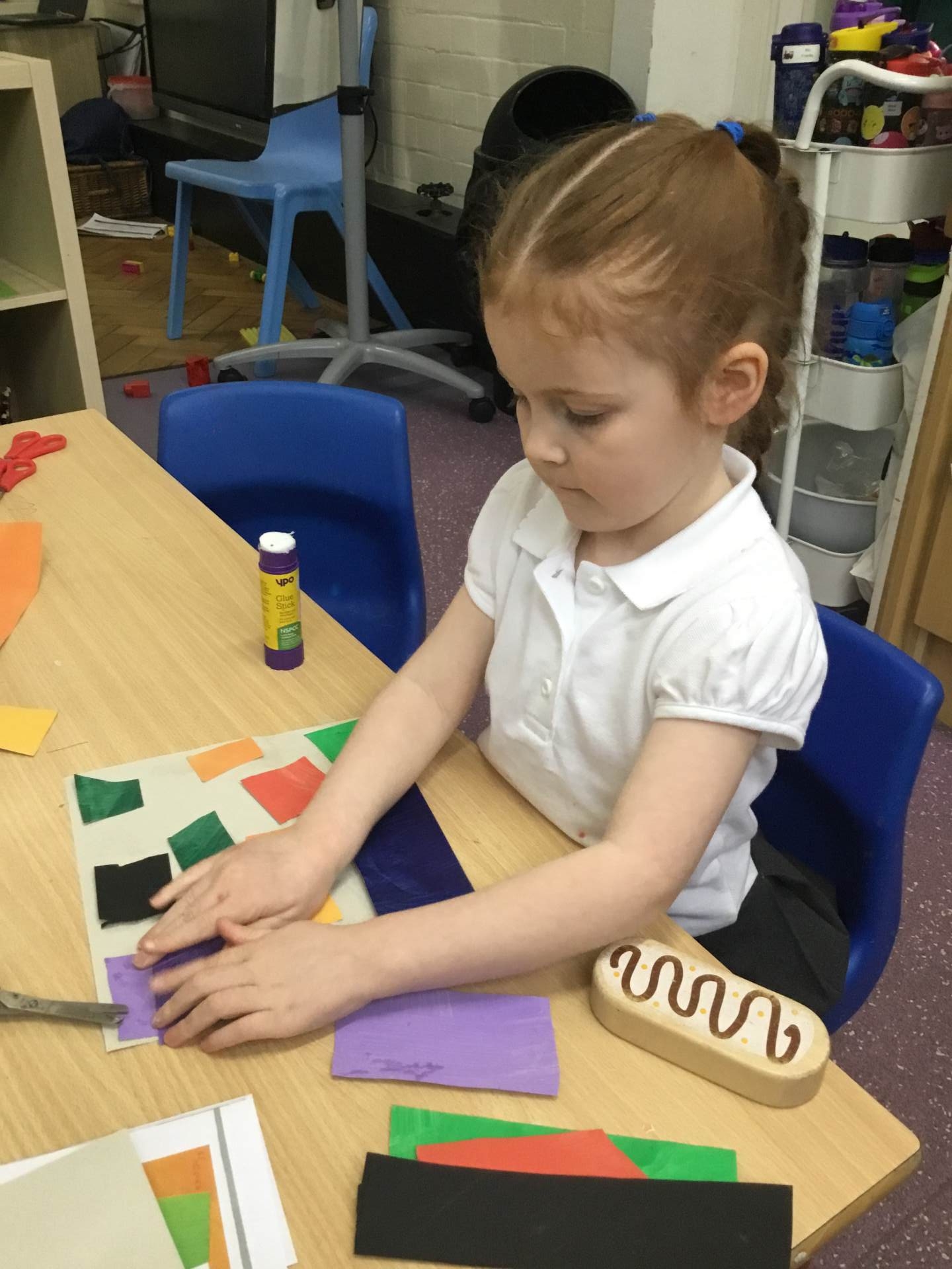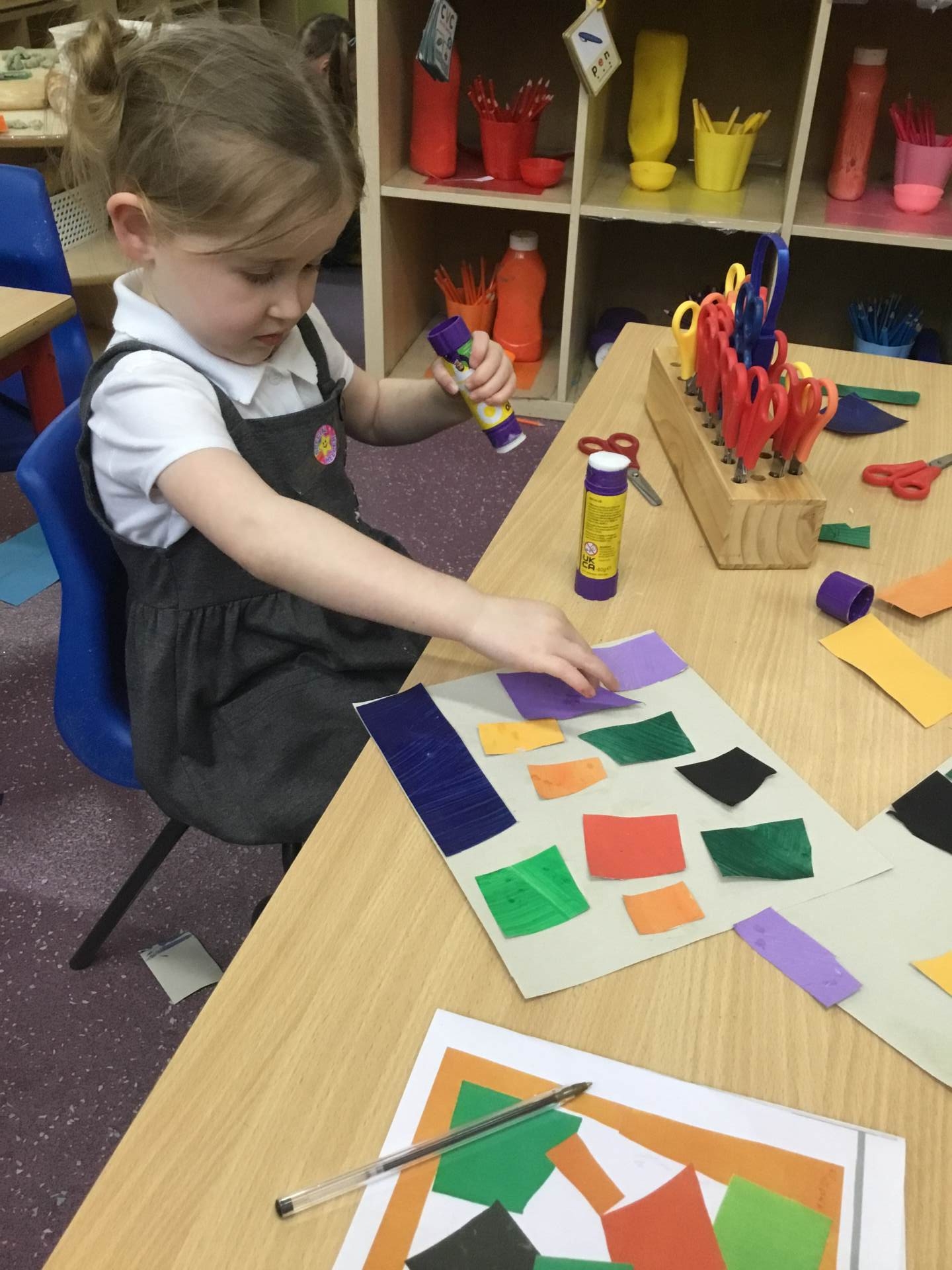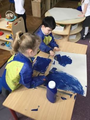 This term we are looking at the artist Henri Matisse, in particular his artwork of 'The Snail' the children painted large pieces of paper before cutting them into squares and then recreating the artwork of 'The Snail'.