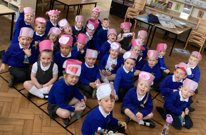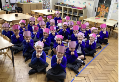 We have been completing our first module of My Happy Mind. We have been learning all about our brain and how it helps us. We learnt that all brains are the same, they are pink and your brain is the size of your two fists together. We then made brain hats.